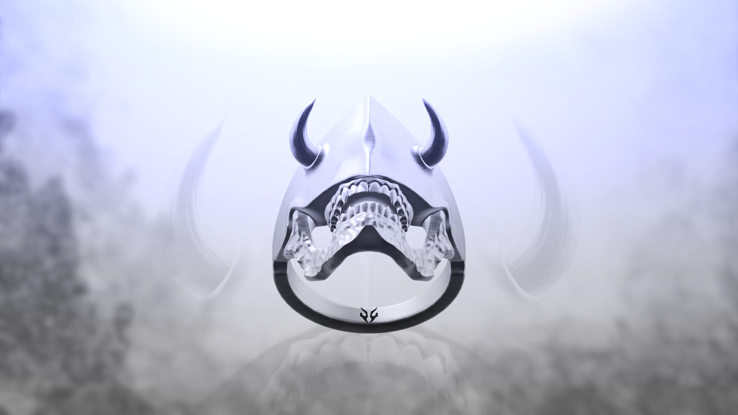 A ring inspired by skulls, oni masks and bird beaks, with a touch of Attack on Titan influence. I wanted to try my hand at designing a bolder centerpiece ring, clean but with an edge of grit.